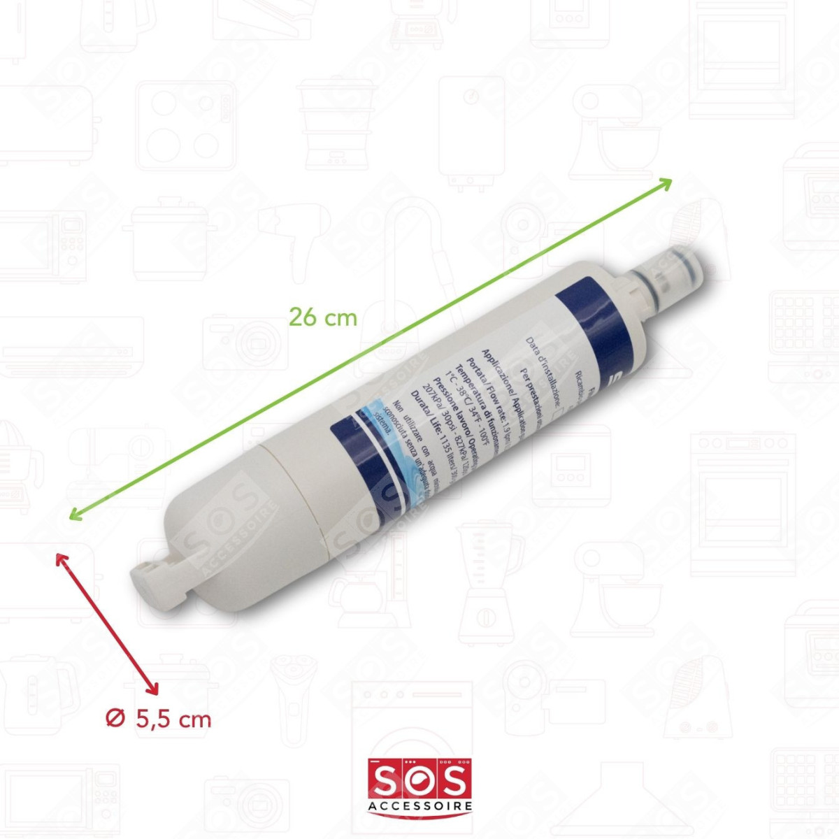 Filtre à eau compatible SBS002 pour réfrigérateur, congélateur WHIRLPOOL, BAUKNECHT, KITCHENAID, IGNIS