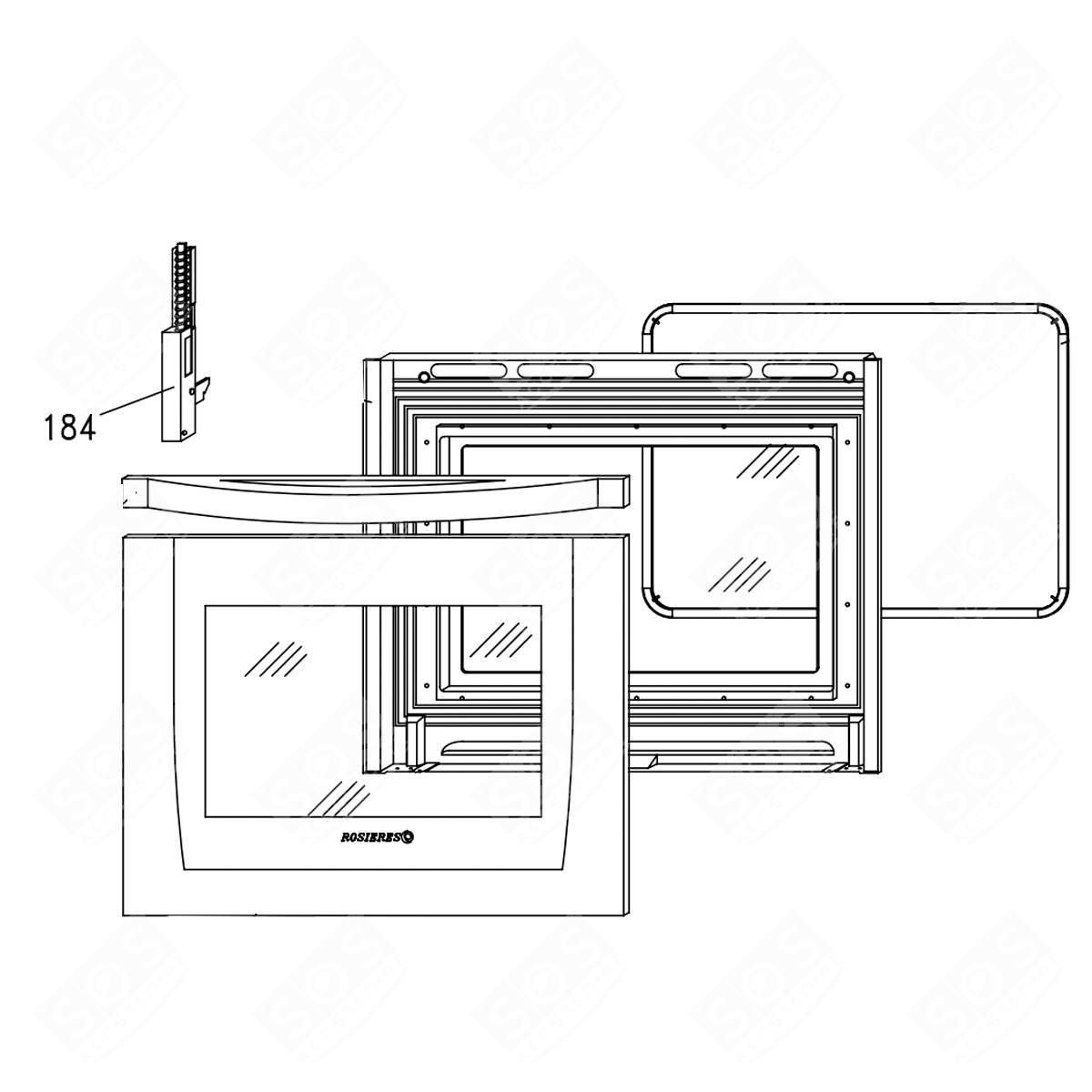 Charnière de porte (repère 184) pour Four, cuisinière CANDY, HOOVER, ROSIERES