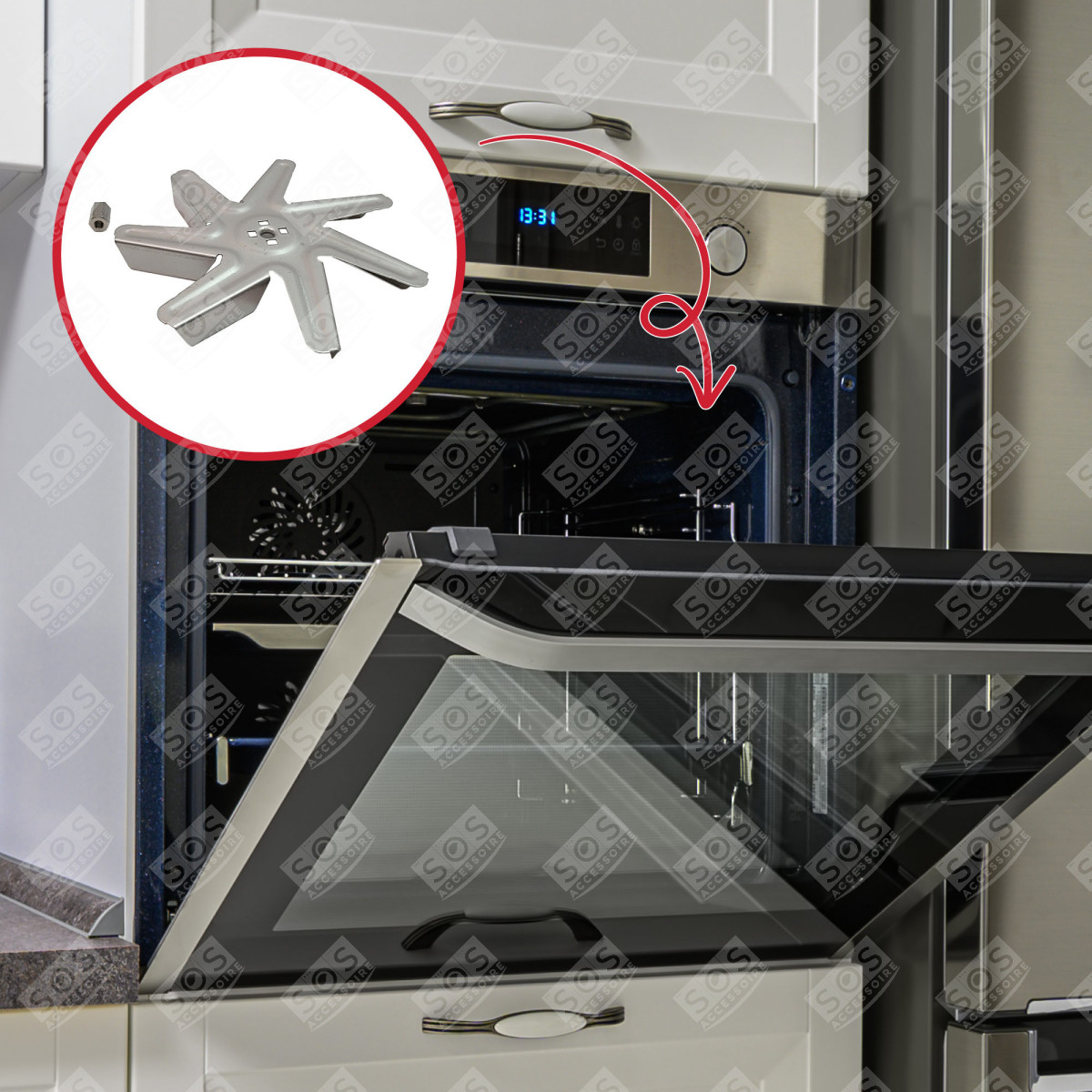 Hélice avec écrou compatible pour Four, cuisinière BOSCH, SIEMENS, VIVA, BLAUPUNKT, JUNKER, NEFF