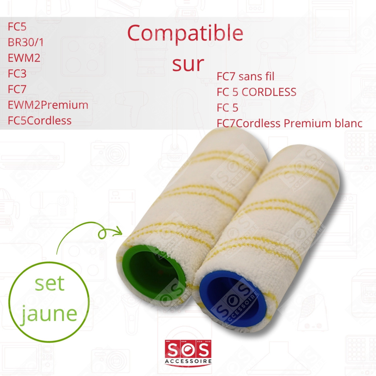 Set jaune de brosses-rouleaux compatible pour Nettoyeur vapeur KARCHER